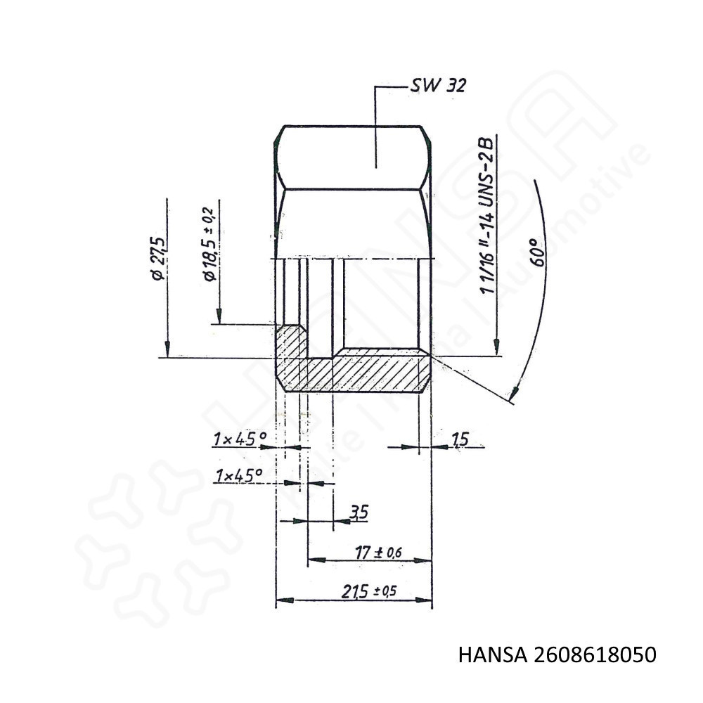 HANSA Überwurfmutter für O-Ring 7/16''-20UNF KMO 2601105550